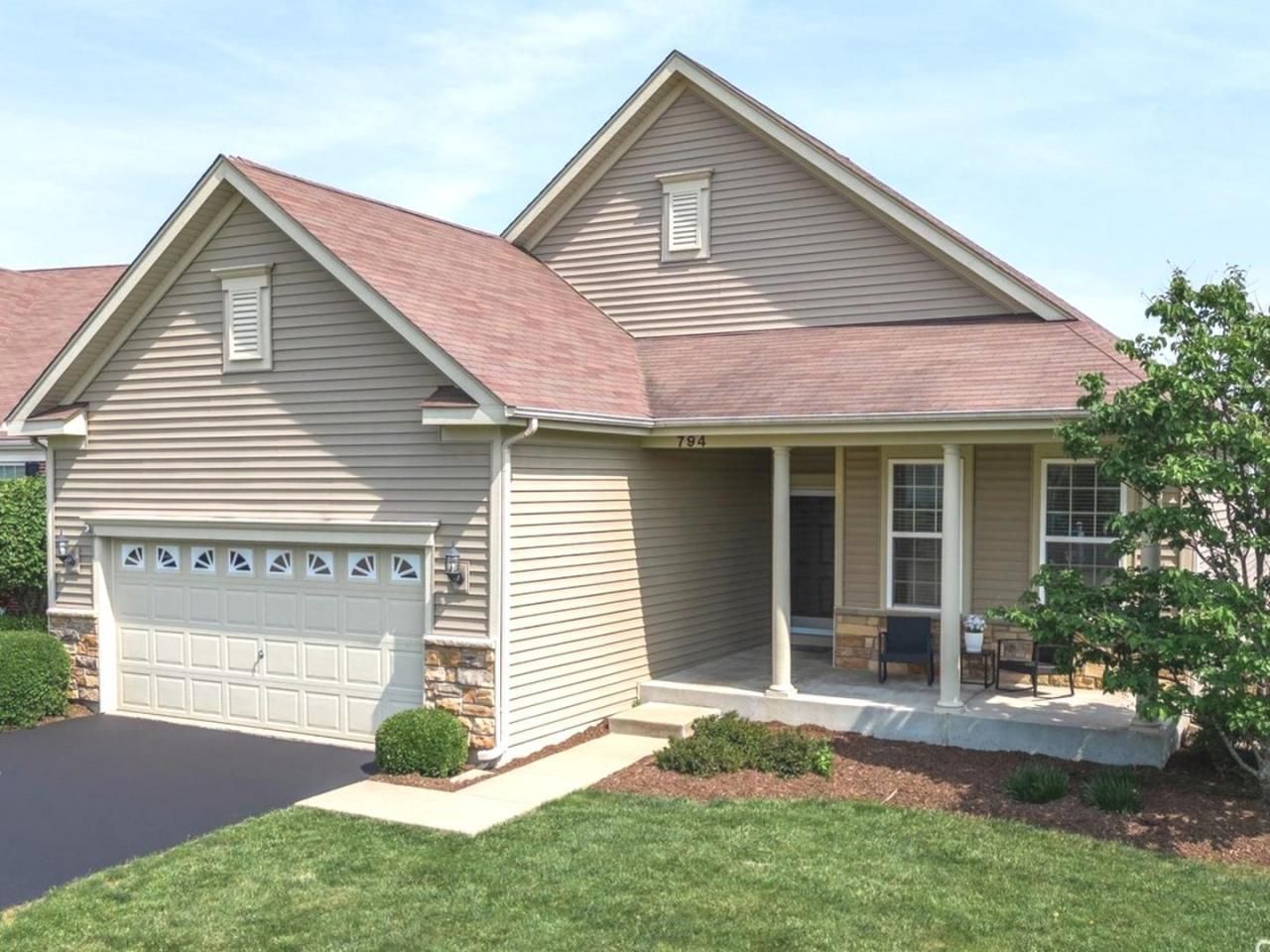 Tucked away on a lovely cul de sac, away from the main streets, this 3 bedroom ranch home, with its 2 full bathrooms, makes life so easy with all this & more on one floor. This original owner added a huge 25ft long, maintenance-free deck out back. There is a spacious 19x7 covered front porch in the front and inside is brand new carpet & fresh paint. Of course, even the lawn care and snow removal are done for you! The kitchen has dark, on trend, 42 cabinets, stainless steel appliances, quartz counters and a giant island with extra seating, electric and storage! The eating area flows into the family room with plenty of room for everyone! The master suite has a massive 10x8 walk in closet and the full bathroom has a water closet and separate shower. There is even a 1st floor laundry room with cabinets and a front load washer and dryer that are staying! The attached 2 car garage and the full, unfinished basement are both the perfect places to store all those extras. The Villas at Southbury is a 55+ community with a pool, clubhouse, tennis & volleyball courts, walking/bike paths, playgrounds and so much more! But if it is time to leave the neighborhood and have some fun, just down the street is the quaint downtown Oswego with its festivals, farmer's market, parades, park, specialty shopping and restaurants. Welcome home!