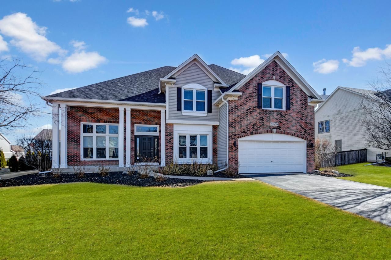 Like a fine sculpture, this quality-built 2-story home in sought-after Grande Park exudes brilliance of design. Nestled in a wonderful community offering swimming, tennis, parks, and other outdoor activities, this home features a fluid and spacious 3,971-square-foot interior. The main level boasts elevated ceilings throughout, starting with an impressive 2-story grand foyer with maple hardwood flooring that continues into the kitchen and breakfast area. A graciously welcoming vaulted living room with large transom windows sits on one side, while a vaulted formal dining room is positioned on the other. The well-appointed kitchen offers maple cabinetry, granite countertops, stainless steel appliances, custom recessed lighting, a breakfast bar, and a butler's pantry with a wine rack, seamlessly connecting it to the formal dining room. The bright, casual dining/breakfast area features skylights and double doors that lead to the backyard, where you'll find a brick paver patio with a gas line for a barbecue grill, shaded by mature trees. The voluminous family room boasts transom windows, a classic brick fireplace, and decorative cove ceilings (attached TV included). A flexible first-floor den/office or fifth bedroom comes with its own private bathroom, offering lifestyle adaptability. Upstairs, you'll find a loft and four generous-sized bedrooms, including a spacious primary suite with a sitting area, a walk-in closet, and a private vaulted bathroom featuring a double sink vanity, separate shower, and tub. The recreation room in the finished basement provides extra space for indoor entertaining. Other highlights include a three-car garage with a tandem third bay, built-in cabinets, and a newer garage door opener (2022). Recent updates include a new roof and gutters (2023), a new water heater (2023), new windows (2019), and one new air conditioner (2019). Walking distance to Grande Park Elementary and Murphy Junior High. Offering immediate occupancy-easy to see, easy to buy. Schedule your viewing before it's gone!
