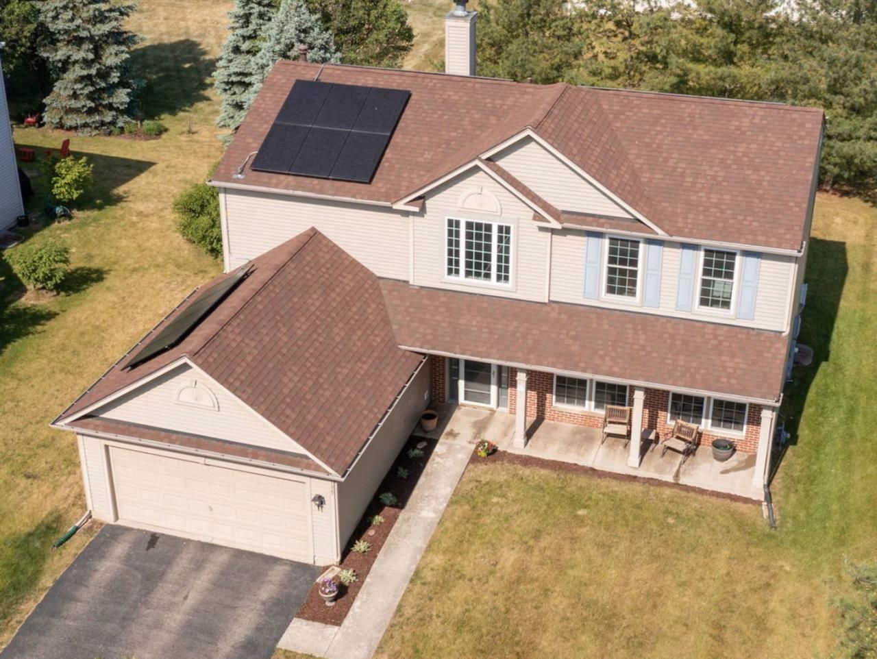 All wrapped up and under one roof and 27 solar panels you will discover the charm of 195 Honeysuckle St. with its 28ft long covered front porch! Within the last 5 years this home has had a new roof, gutters & facia, a new sump pump, garage door opener, garbage disposal, microwave and some new siding. The majority of the windows have been replaced (including the sliding glass door) while the furnace and A/C have been regularly serviced and are not yet at half of their life expectancy. There is a whole house humidifier, a whole house water filtration system, a Chamberlain Smart garage door opener and all the closets have a wire rack organizers. The interior has been freshly painted with today's on-trend color and the upgraded trim work & 3 panel doors are sparkling white! The kitchen, eating area and family room are all open making entertaining a breeze! The center island has extra storage & electric. There are 42 light oak cabinets, a lazy Susan, a generous pantry for all the extras and hardwood floors. The focal point of the family room is the angled fireplace with its custom mantle, ceramic surround & beautiful millwork. Rounding out the main level is an office, laundry room, dining room and living room. Upstairs you will discover the master suite with its vaulted ceiling, a ceiling fan/light, huge walk in closet and private, full bathroom with double sinks, a separate shower and soaker tub. The other 3 bedrooms share a full hallway bathroom and one has a Murphy Bed, another has bamboo hardwood flooring and they all have plenty of closet space. This home has a full basement waiting for your finishing touches which should allow for many options because there are high ceilings, 2 egress windows and a rough in for a future bathroom or wet bar. If you prefer to enjoy the outdoors step outside to the 32x12 custom UniBlock patio that is accented with a compass inlay and enjoy the privacy of the mature White Pines that line the property. This home is part of the Bolingbrook Park District with all its activities including the 4th of July fireworks that you can enjoy from the park that is a short walk down the street. The DuPage Biking Trail, shopping, restaurants and 355, I-55 and I-80 are all nearby. Every thought of commuting with the Pace Bus? These owners have and found it to be 1/2 the price! Combined with their virtually non-existent electric bills because of their 27 solar panels this home is the perfect combination of practical and quality. 195 Honeysuckle St. welcomes you!